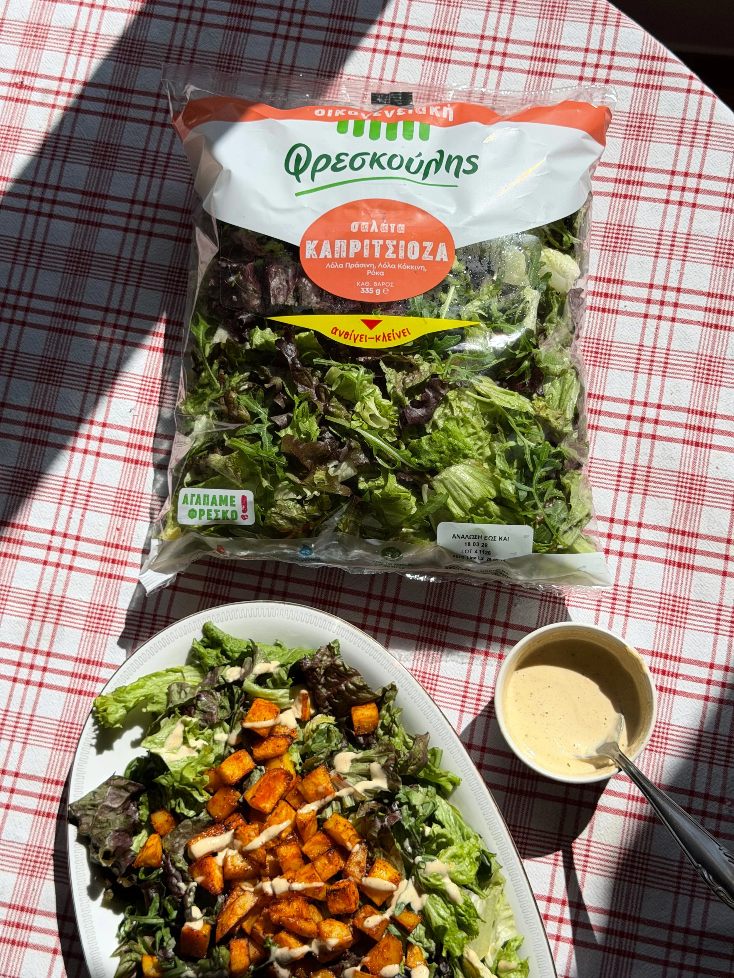 *Η δόση του dressing είναι παραπάνω από ότι αντιστοιχεί σε μία συσκευασία Φρεσκούλης, ώστε να έχουμε να ντρεσάρουμε κάποια σαλάτα και τις επόμενες μέρες.