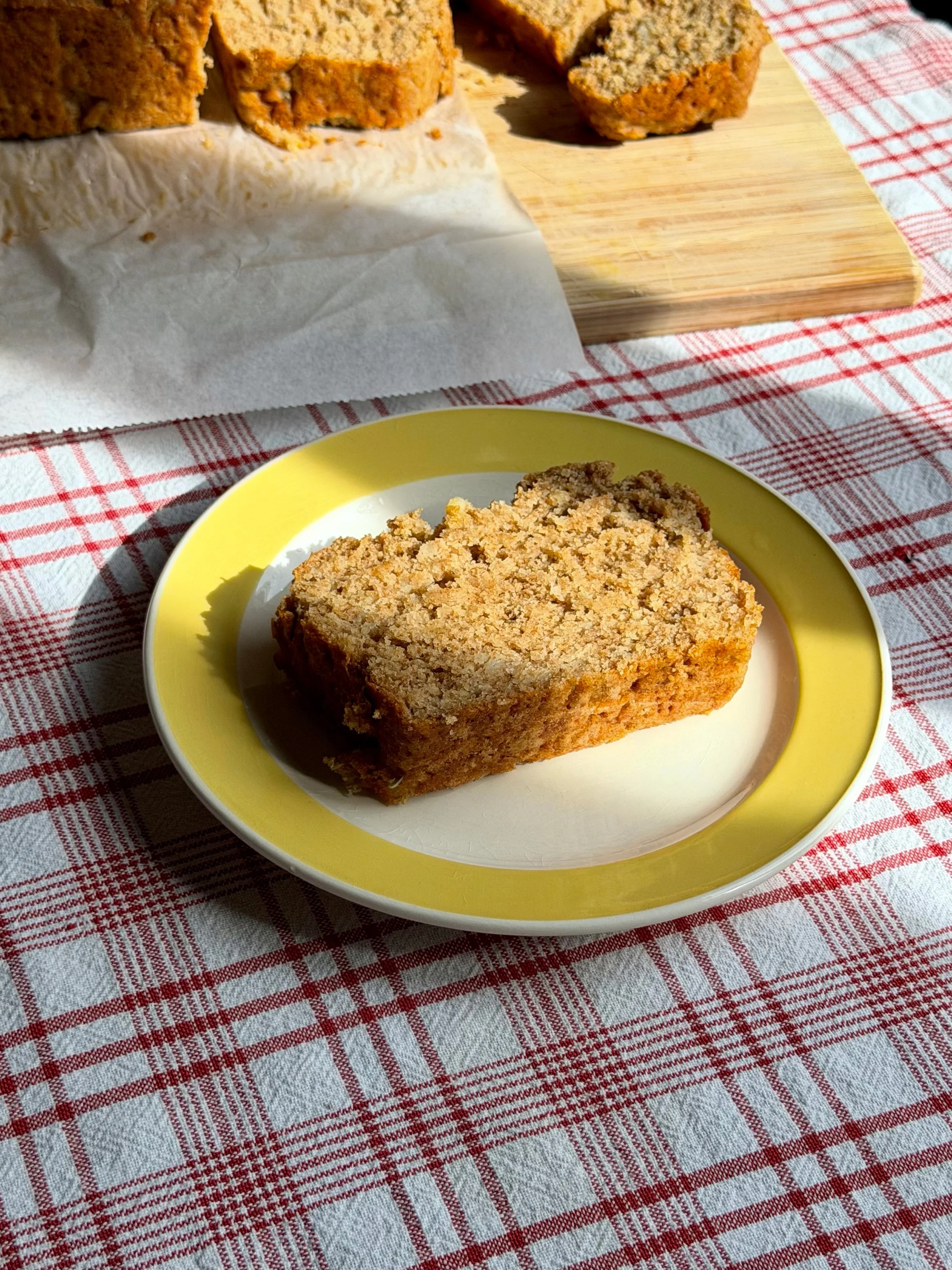 Απλώνουμε το μείγμα ομοιόμορφα σε φόρμα (μήκους 30 εκ.), ελαφρώς λαδωμένη και περασμένη με λαδόκολλα και ψήνουμε σε προθερμασμένο φούρνο στους 170°C στον αέρα για περίπου 40 λεπτά (ελέγχουμε αν έχει ψηθεί βυθίζοντας ένα μαχαιράκι ή οδοντογλυφίδα στο κέντρο του κέικ. Αν βγει με υγρό μείγμα, ψήνουμε λίγα λεπτά παραπάνω).